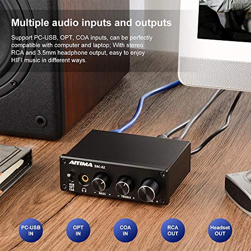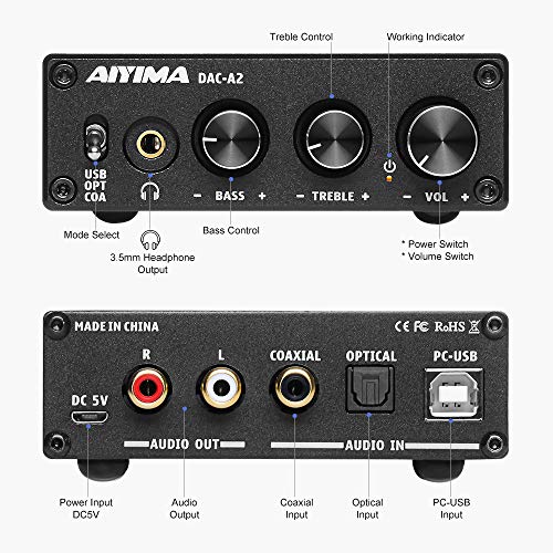 Specificaties: AIYIMA DAC-A2 DC5V Mini USB Powered DAC Audio Decoder Desktop Koptelefoonversterkers PC-USB / Coaxiaal /Optisch naar RCA…