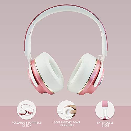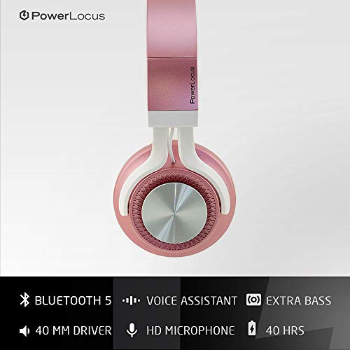 Bluetooth Koptelefoons, PowerLocus P3 draadloze Over-Ear Koptelefoon P3 Inklapbaar – Bluetooth 5.0 – Met microfoon (Rose…