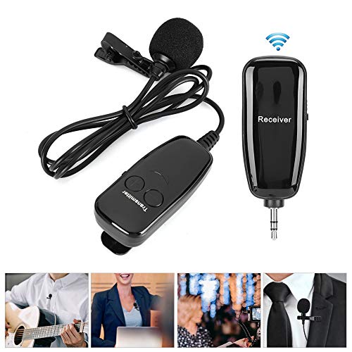 Draadloos microfoonsysteem, UHF draadloze lavalier-microfoon met zender en ontvanger, 50 m bereik, lavalier…