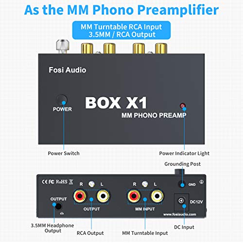 Specificaties: Fosi Audio Box X1 Phono Voorversterker voor MM Platenspeler Mini Stereo Audio Hi-Fi Fonograaf/Platenspeler…