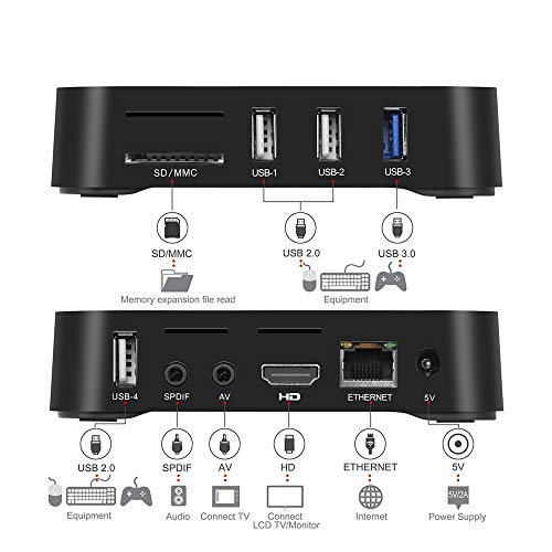 Smart appreance bestaat uit veel jacks.Ingebouwde TF-kaart/USB-aansluitingen, maakt snellere gegevensoverdracht van de externe opslagapparaten. Ethernet voor het uitwisselen van web-data en HD voor video-out.