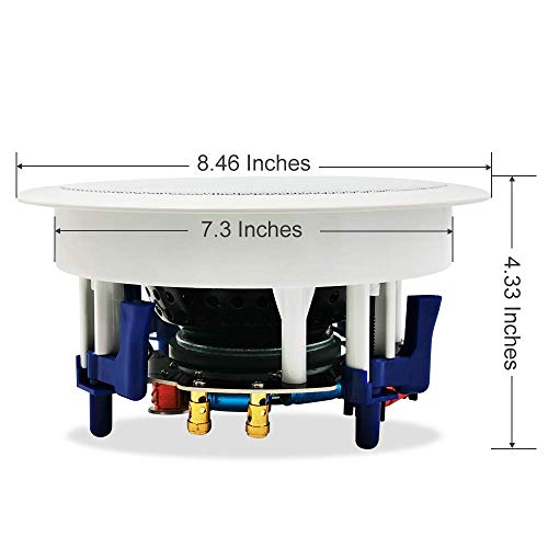 Bevestiging op wand/Ceilings:Totale luidsprekers Diameter 8,46 Inch (21,5 CM), Uitgesneden Diameter 7,3 Inches(18,5 CM), Speakers Diepte: 4,33 Inches (11 CM)