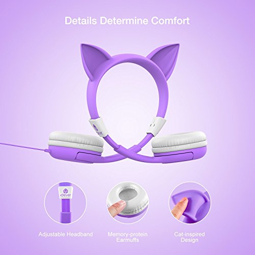 iClever Safe hoofdtelefoon voor kinderen, vanaf 3 jaar, met verstelbare hoofdband en gevoerde oorkussens en hoofdband (aanbevolen voor kinderen van 3 tot 12 jaar)