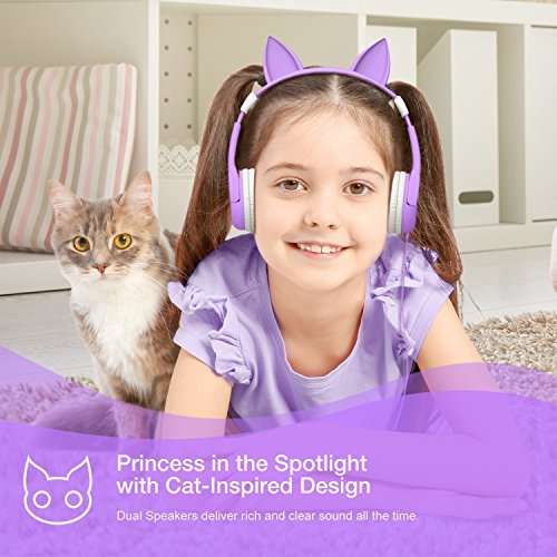 iclever BoostCare Kinderhoofdtelefoon, kat-geïnspireerde bedrade on-ear headsets met 85dB volume begrensd…