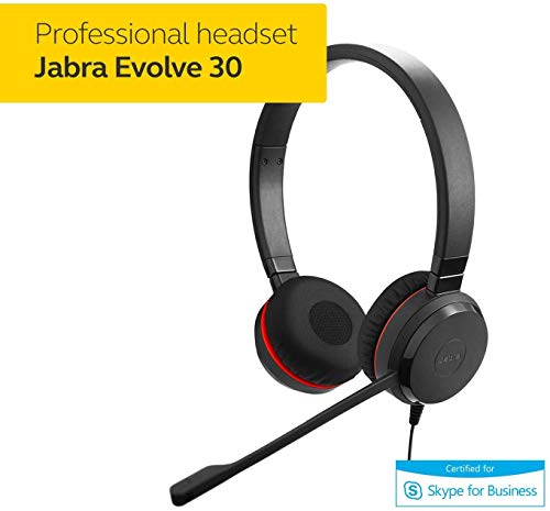 Jabra Evolve 30 MS Stereo Headset – Microsoft-gecertificeerde Koptelefoon voor VoIP-softphones met Passive Noise…