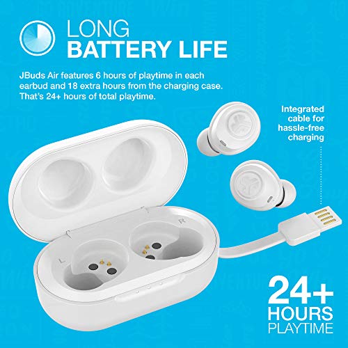 LEVENSDUUR VAN DE BATTERIJ: JBuds Air houdt je 6 uur lang op de been met elke oordop, plus 18 uur extra oplaadtijd in het doosje. Geniet tot meer dan 24 uur van je favoriete muziek of podcast