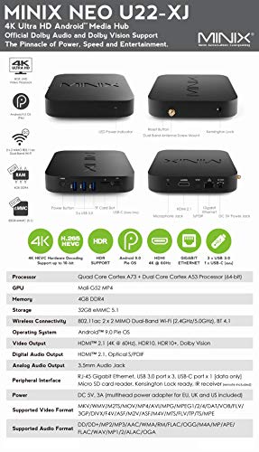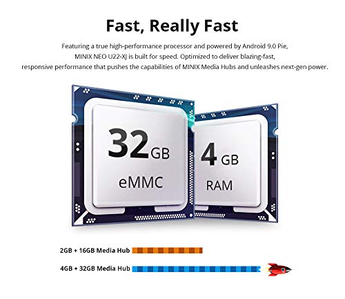 MINIX Android 9.0 Pie Media Hub 4K Ultra HD HDR10+4GB DDR4/32GB eMMC HDMI 4K @ 60Hz 3 x USB 3.0 USB-C [data only] GLAN…