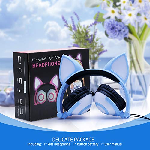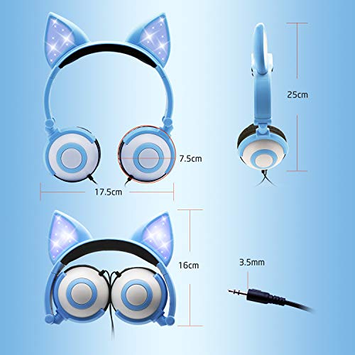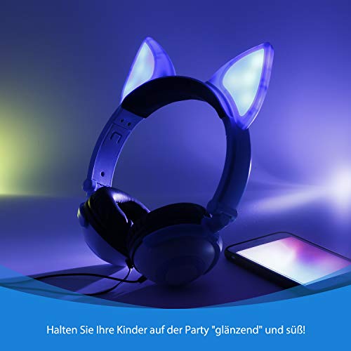 Specificaties: ONTA Hoofdtelefoon kinderen met schattige LED lichtgevende kattenoren 85dB volume beperkt opvouwbaar verstelbare On Ear…
