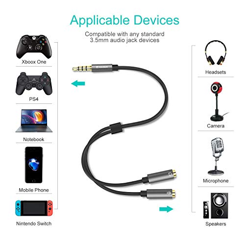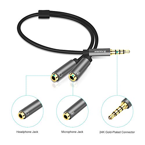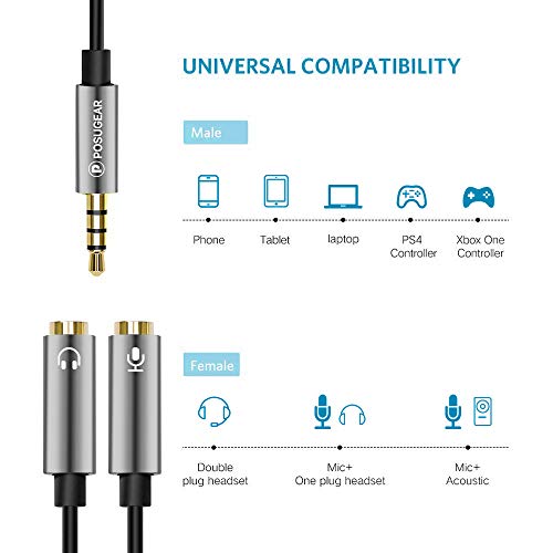 Specificaties: POSUGEAR Hoofdtelefoon-adaptersplitter, 3,5 mm stekker op dubbele 3,5 mm jack (headset en microfoon) Y splitter kabel…