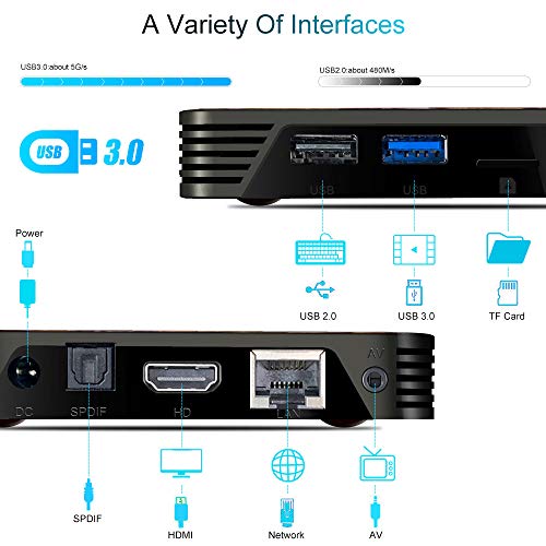 TV Box Android 10.0 4GB RAM 64GB ROM RK3318 Quad-Core 64bit Cortex-A53 Ondersteuning 2.4/5.0GHz Dual Band Wifi BT4.0 3D…