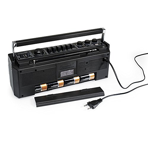 80s Ghettoblaster niet missen: mix van retro boombox en moderne muziek. Kan als oude cassette-/cassetterecorder of voor moderne muziek via USB- en SD-kaarten worden gebruikt. Bevat een auto-stop-functie voor cassettes