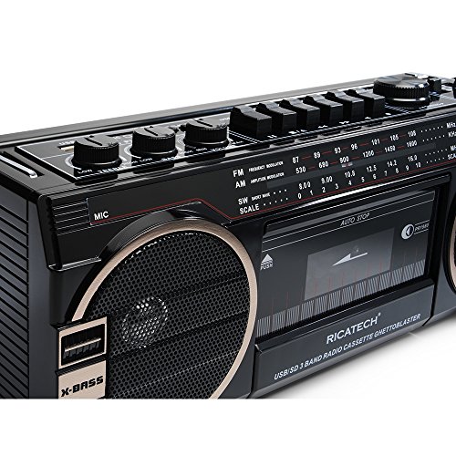 Ricatech PR 1980 Ghetto Blaster Boombox, cassette-/cassetterecorder, AM/FM/SW 3-bands radio, twee 8-watt-X-bas…