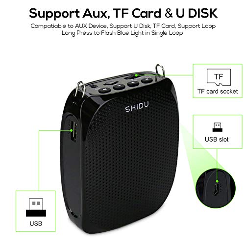 Specificaties: Draagbare stemversterker, SHIDU draadloze Spraakversterker luidspreker 10W oplaadbare draagbare PA-systeem luidspreker…
