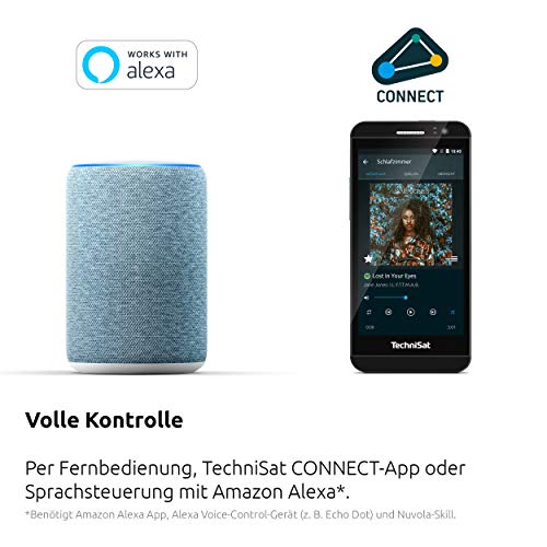 - Besturing via TechniSat Connect-app (iOS, Android), afstandsbediening of Amazon Alexa spraakbesturing.