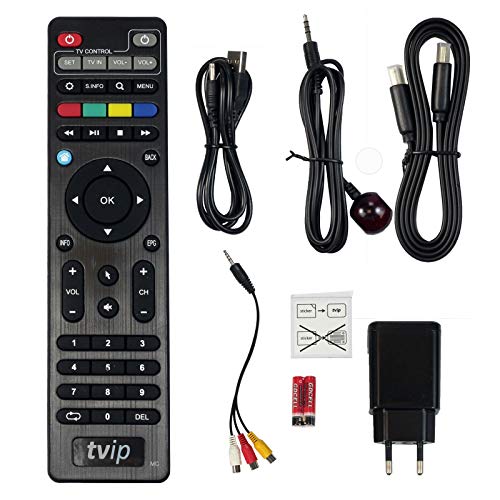 Inhoud: 1 x TVIP S-box v.415se, 1 x afstandsbediening + batterijen 1 x snelstartgids 1 x infrarood oog 1 x 1 m netwerkkabel 1 x jack naar chinch-kabel 1 x HDMI-kabel 1 x adapter 5 V 2 A