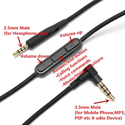 Specificaties: Vervangende audiokabel voor koptelefoons Bose QuietComfort QC25 QC35 met ruisonderdrukking, microfoon en volumeregelaar