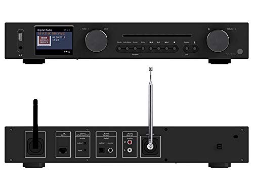 Audio-receiver voor aansluiting op een hifi- of stereo-installatie Bluetooth 4.2 voor draadloze muziekoverdracht van smartphone, tablet-pc en audio-apparaten met bluetooth. Muziek afspelen van USB-stick tot 32 GB (gelieve te bestellen), ondersteunde formaten: MP3, WMA, AAC, FLAC 360° richtbare WLAN-antenne Leuke extra’s: VerzorgVia webinterface, wekker met 2 geheugenplaatsen voor wekfunctie via radio of wektoon, uitschakeltimer