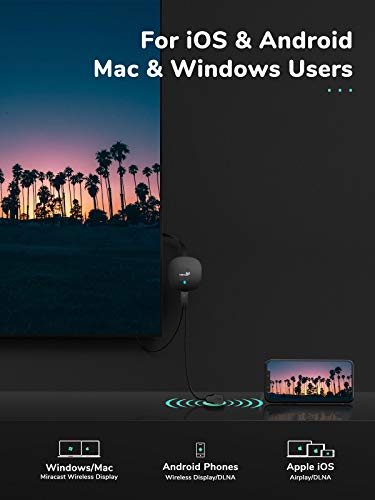 【Draadloos high-definition display】 De HDMI-aansluiting van deze draadloze displaydongles ondersteunt 4K-video. Je kunt een smartphone, notebook of iPad op een tv, een projector of een monitor aansluiten. Alles wat je op je mobiele apparaten ziet, wordt op het grotere scherm gespiegeld, wat gemakkelijker te bekijken en geschikt is voor het delen. Maak van je tv een smart tv.